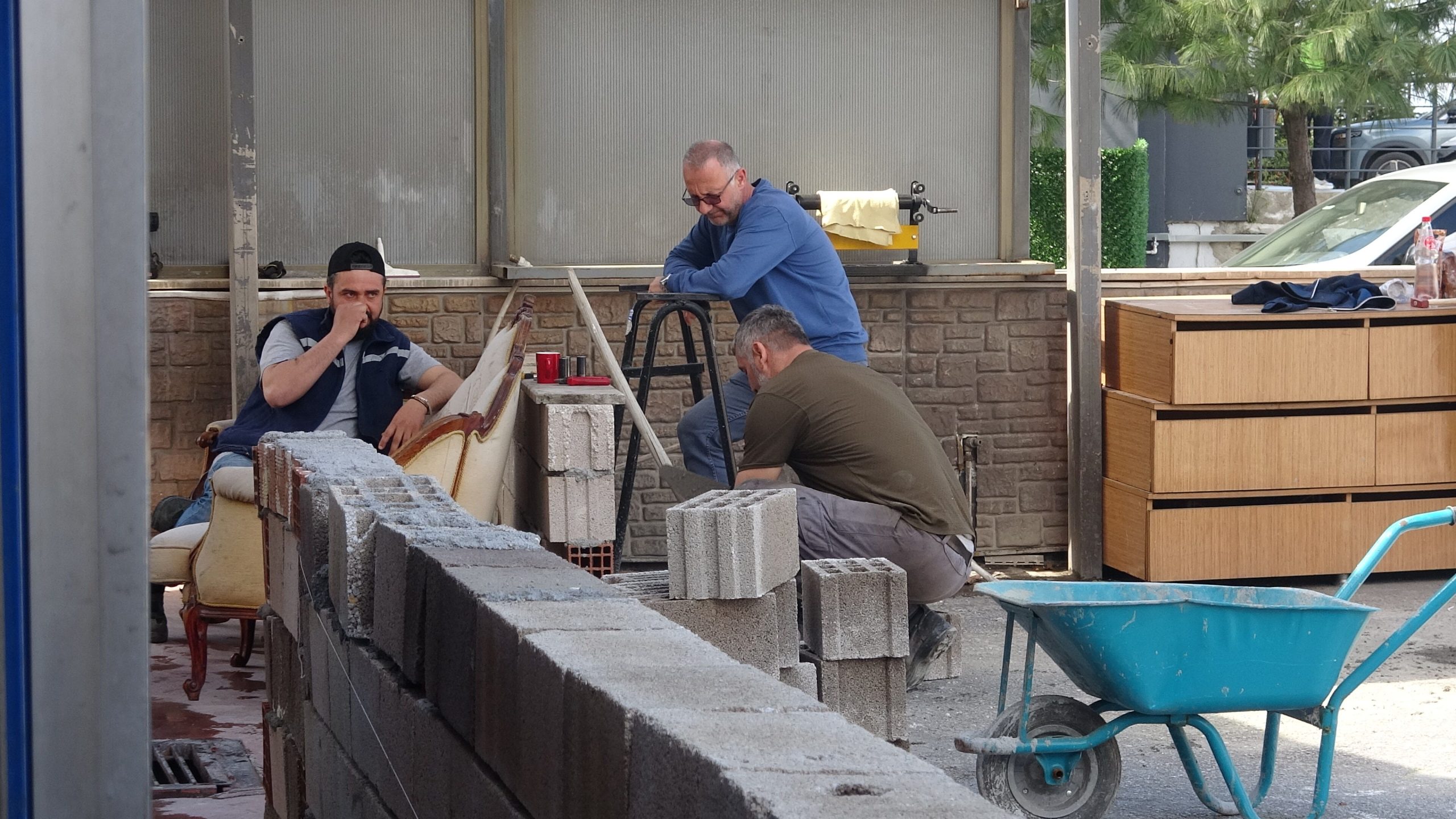 Bursa’da, A.T., ‘yer meselesi’ yüzünden tartıştığı komşusu oto lastik dükkanı işletmecisi Bora Yalım’ın dükkanın önüne tuğladan duvar örüp, önüne de konteyner koydu.